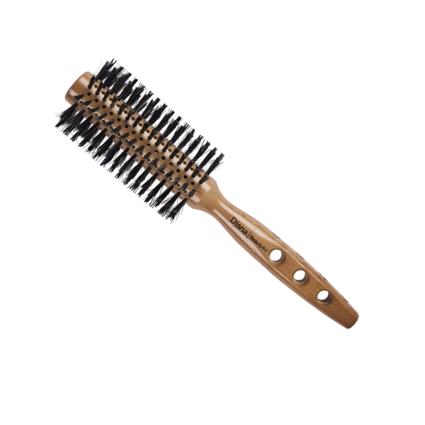 Estructura de madera natural cerdas de jabalí y nylon, indicado para moldear tu cabello con mimo y realzar su belleza. Si tu cabello es fino le proporcionará más cuerpo y si es grueso lo disciplinará respetando el cuero cabelludo.