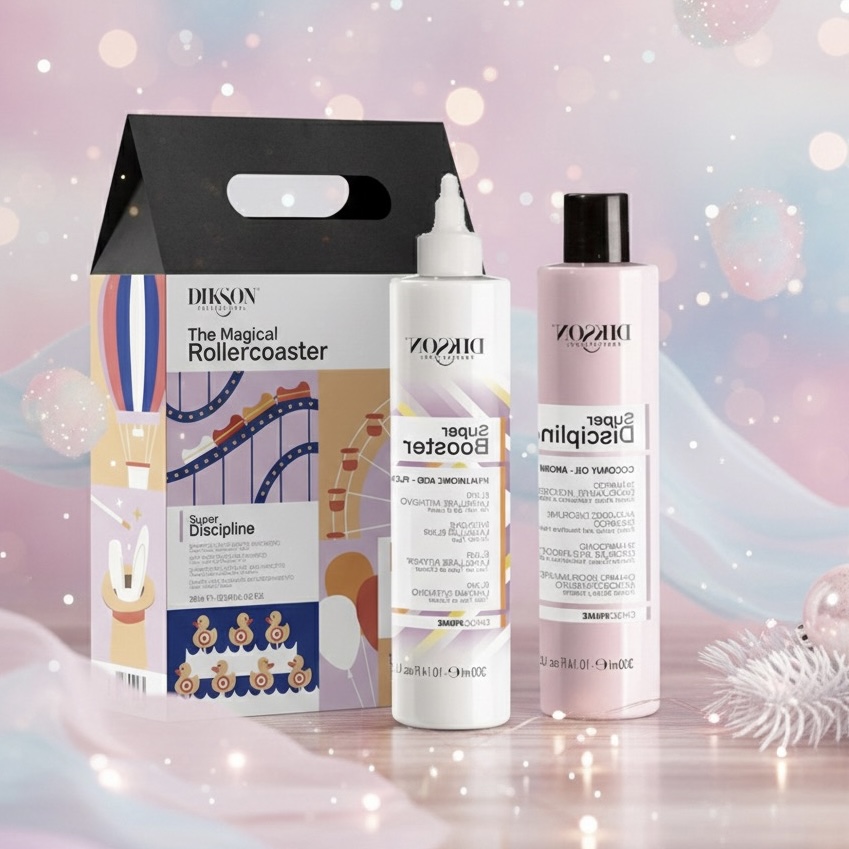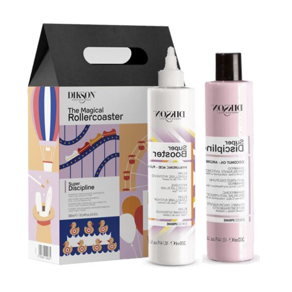 Incluye un champú disciplinante y un booster elixir laminar, Con Ácido Hialurónico, Plex, Queratina y Proteínas de Arroz, que reestructura, sella y aporta un brillo espectacular.